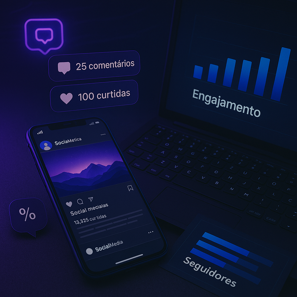 Nosso diferencial é a proximidade com o cliente, oferecendo soluções personalizadas que unem gestão de redes, identidade visual, sites e tráfego pago com foco em excelência e crescimento sustentável.